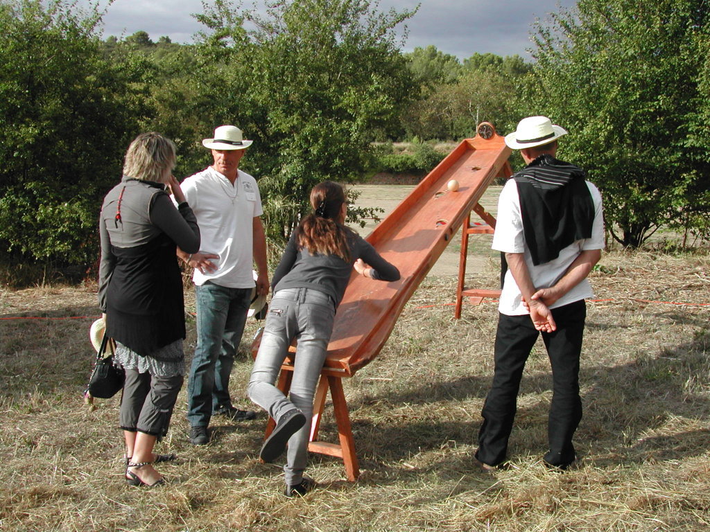 Faire monter la boule le plus haut possible sur la pente sans qu’elle ne redescende et atteindre l’un des trous/cases numérotées en haut.