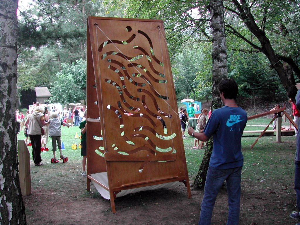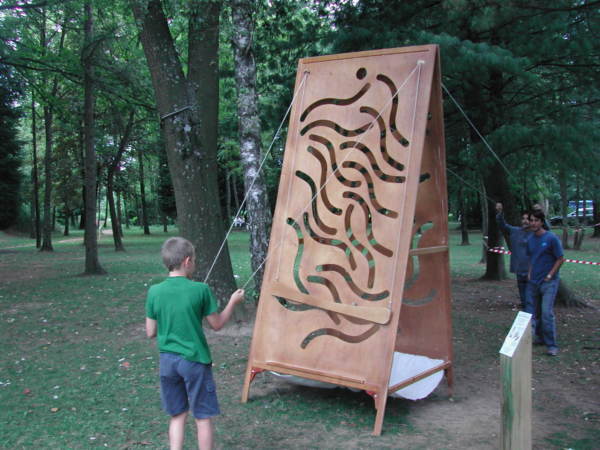 Il s’agit d’emmener la boule le plus haut possible sur une planche perforée de toutes parts. Pour cela, vous devrez coordonner vos bras, en tirant sur la corde.